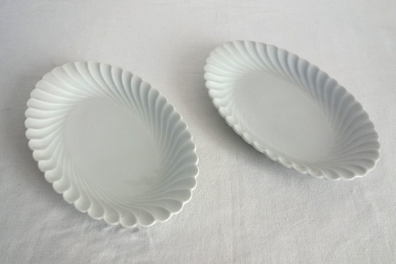 Set of 2 Haviland white porcelain Limoges twisted serving dishes.