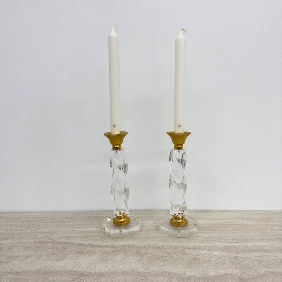 Set of 2 lucite twisted candle sticks, 1970’s Dimensions: 23cm H, 9,5cm Diameter Condition: Good
