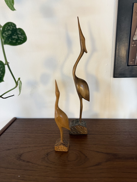 Set of 2 vintage teak cranes from the 1960s.