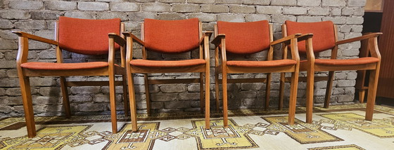 Set of 4 CASALA armchairs from the 1970s. Original wool fabric. Some marks on the seats (see photos). Good seating. Slight traces of wear from time and use.