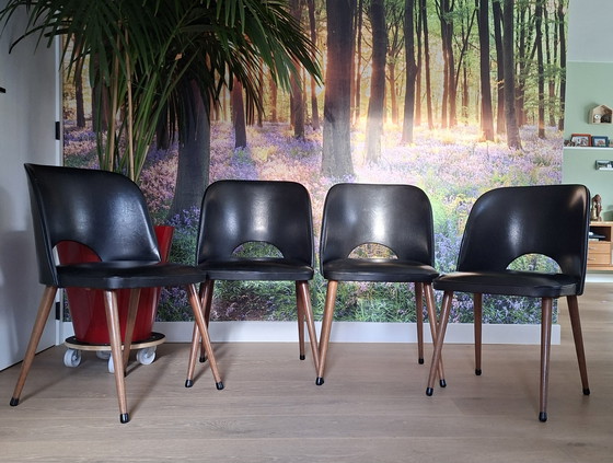 Bring a touch of retro charm to your dining room with this set of four vintage dining chairs from the 1950s. These chairs combine style and comfort in an instant, unique way.