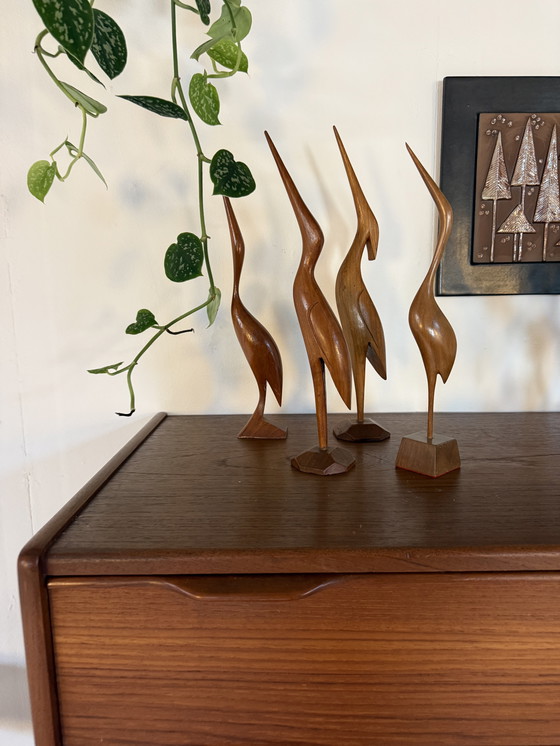 Set of 4 vintage teak cranes/herons from the 1960s.