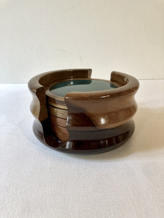 One coaster has a small, original imperfection in the wood; otherwise, the set is in perfect condition with no flaws to report.