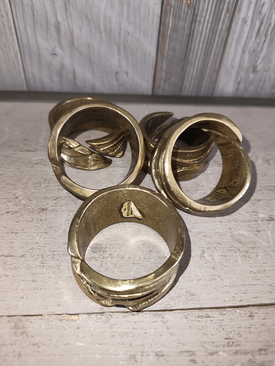 This set of 5 vintage Italian brass napkin rings adds a touch of elegance to any table setting. With their classic design and warm golden sheen, they are perfect for both formal dinners and cozy family gatherings. The napkin rings are handcrafted, adding to their unique charm and character.