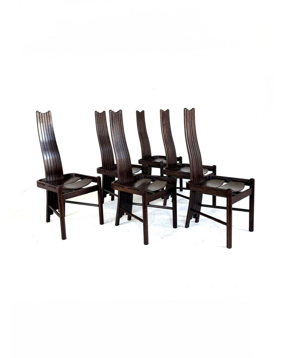 Set of 6 vintage dining chairs in a Brutalist style, developed by the German quality brand Allmilmö, 1980s.