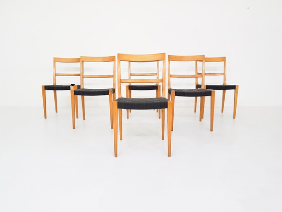 Set of 6 Bruno Mathsson Mimat Mi401 dining chairs.