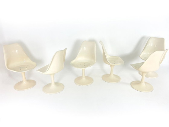 Set of 6 Tulip chairs, produced by Play in Italy in the 70s. Made of fiberglass, in good condition with slight signs of aging.