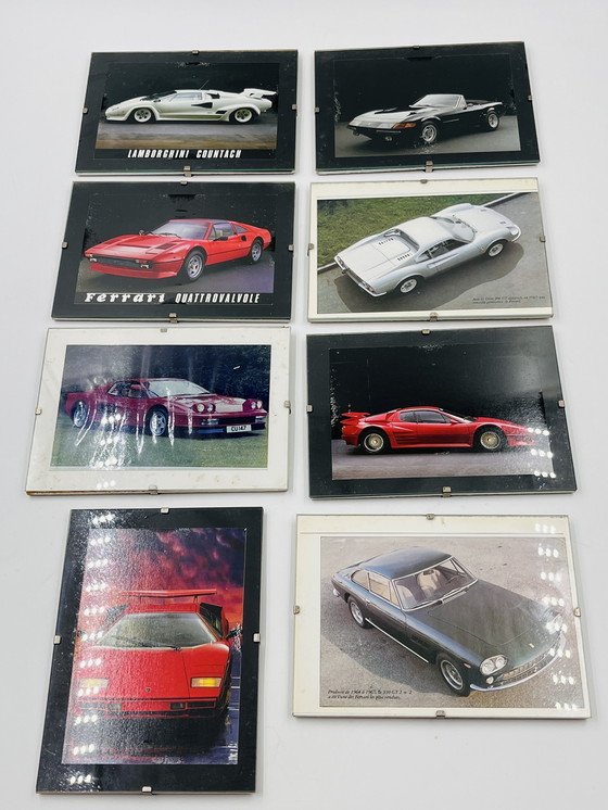 Rekindle your nostalgia with this stunning set of 8 vintage car postcards under glass! Perfect for car enthusiasts and collectors, these postcards feature iconic models like the Lamborghini Countach and the Ferrari Quattrovalvole. Each card captures the elegant design and timeless appeal of these classic cars.