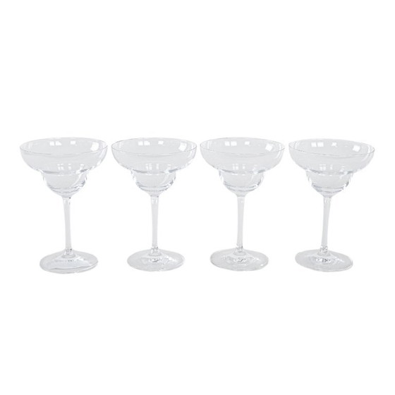 Vintage margarita glasses, set of 4. Elegant glassware with a wide bowl and slender stem, ideal for serving classic margaritas and other cold cocktails. The simple, timeless design makes them a perfect fit for both modern and retro table settings. Stylish, practical and collectible – perfect for gatherings with friends.