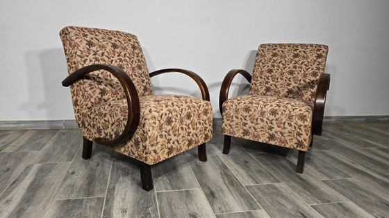 Set of vintage armchairs by Jindrich Halabala. Designed and manufactured in Czechoslovakia in the 1940s.