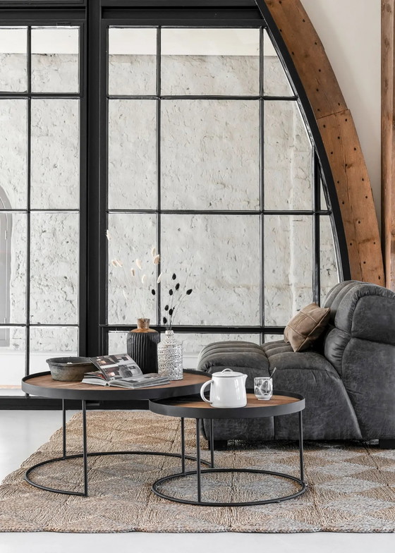 Ø80x40cm - Ø60x35cm - natural teak. Delivery and assembly included.