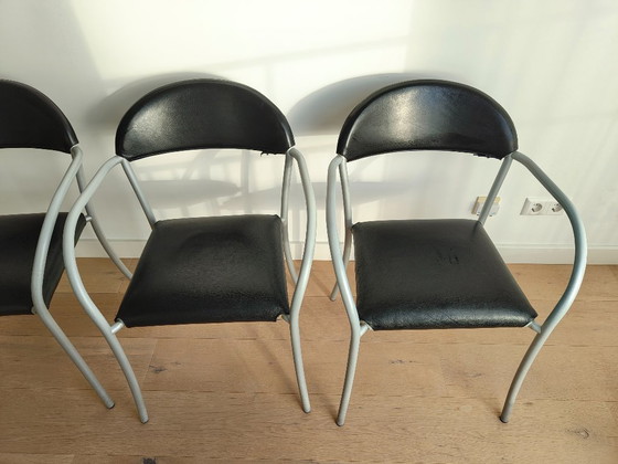 ConditionGoodColorsGrey, BlackMaterialMetal, LeatherNumber of items6BrandZanottaHeight92 cmWidth50 cmDepth50 cmSeat height47 cmSigns of usageScratches