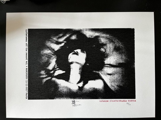The screen prints were printed during an event at the in)(between gallery in Paris on November 11, 2017, by Antoine d'Agata and the printer, Luigi Clavareau.