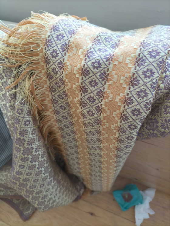 Experience the sophistication of this silk cloth from Thailand, a masterpiece of traditional craftsmanship. The rich patterns and vibrant colors bring a touch of exotic elegance to your interior. Perfect as a decorative element or as a luxurious scarf, this piece adds a unique charm to any room.