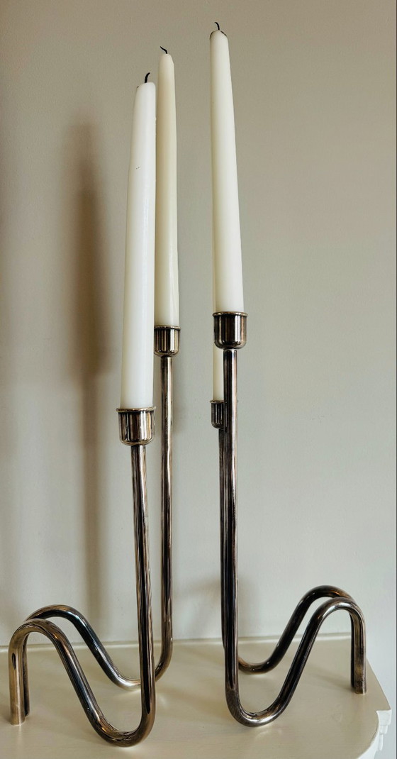 Silver Plated sculptural pair of candleholders by Lino Sabbatini from 1970s'