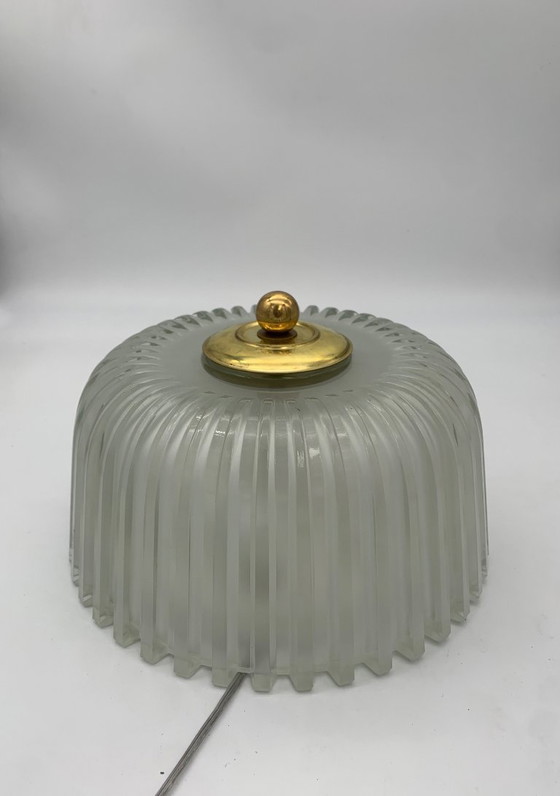 Ceiling or wall lamp, featuring a simple and functional design typical of the Seguso style. The structure is composed of a circular metal base with a white finish.
