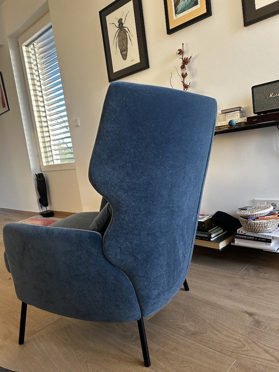 ConditionGoodColorsBlueMaterialVelvetNumber of items1Height93 cmWidth79 cmDepth93 cmSeat height4 cmSigns of usageScratches