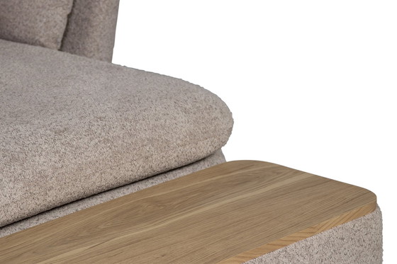 Bonnie corner sofa by Sits in Poppy 2 beige fabric on oak legs, consisting of: 2-seater sofa right and chaise longue left (dimensions 328x155/99x79hg) incl. pouf dimensions 97x43x28hg