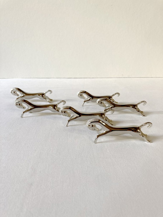 Set of 6 silver-plated metal knife rests in the shape of a racehorse. 1960s.