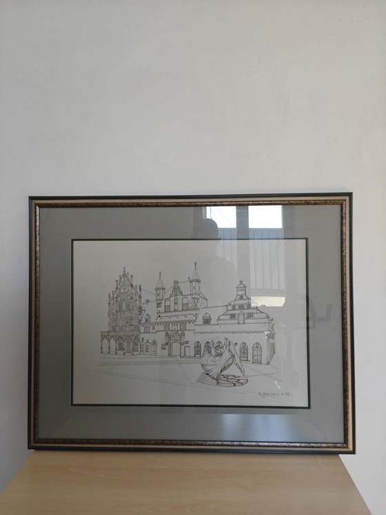 Sketch of Mechelen City Hall by Q. Steurbaut.