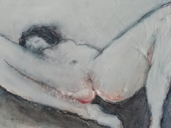 Discover the serene beauty of this modern artwork, titled "Sleeping". This painting captures an intimate moment of peace and tranquility, perfect for any space that could use a touch of sophistication and peace.