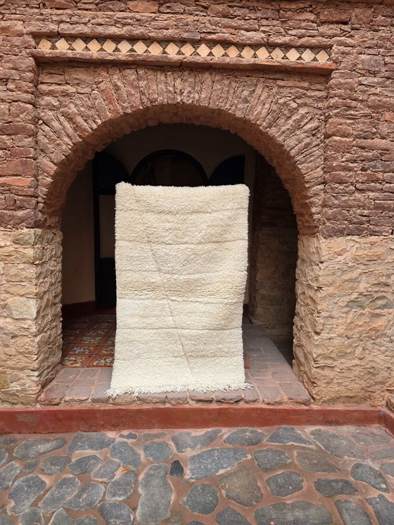 Discover this little gem of a Moroccan Beni Ourain rug, perfect for adding a touch of warmth and authenticity to your home. With its compact dimensions of 158 x 103 cm, it fits easily into any room, whether it's your living room, bedroom, or office.