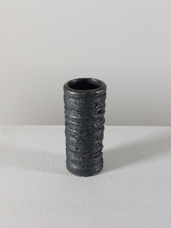 This small, vintage mid-century vase captivates with its brutalist form and unique oxide glaze. Perfect as a decorative element in any room, it blends seamlessly into both modern and classic interior design styles.