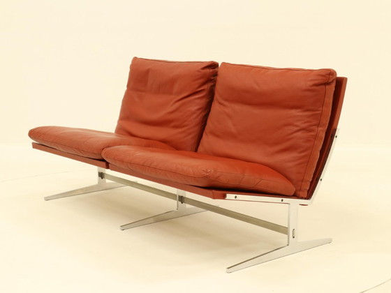 Designed by the visionary duo, Freben Fabricius and Jørgen Kastholm, this exquisite two-seater is a masterpiece from the 1960s, produced by the esteemed Danish furniture manufacturer BO-EX.