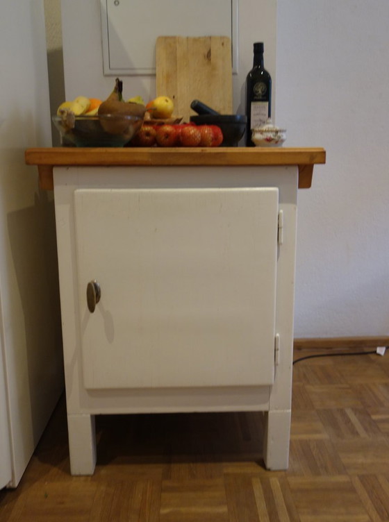 Original Vewag Eschebach icebox converted into a storage kitchen cabinet with two drawers. Originally from the 1930s. Remodeled by a carpenter.