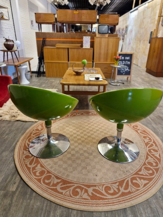 ConditionExcellentColorsGreenMaterialPlasticNumber of items2StyleVintageHeight79 cmWidth65 cmDepth46 cmSeat height45 cm