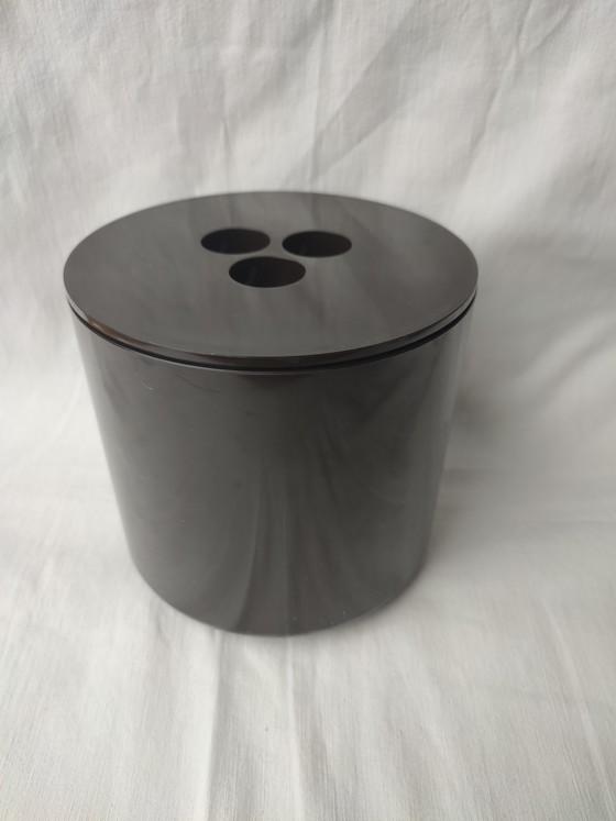 This vintage Crayonne ice bucket, manufactured in the United Kingdom, is a beautiful example of Space Age design. With its clean lines and brown color, this ice bucket adds a touch of retro-futurism to any bar setup.