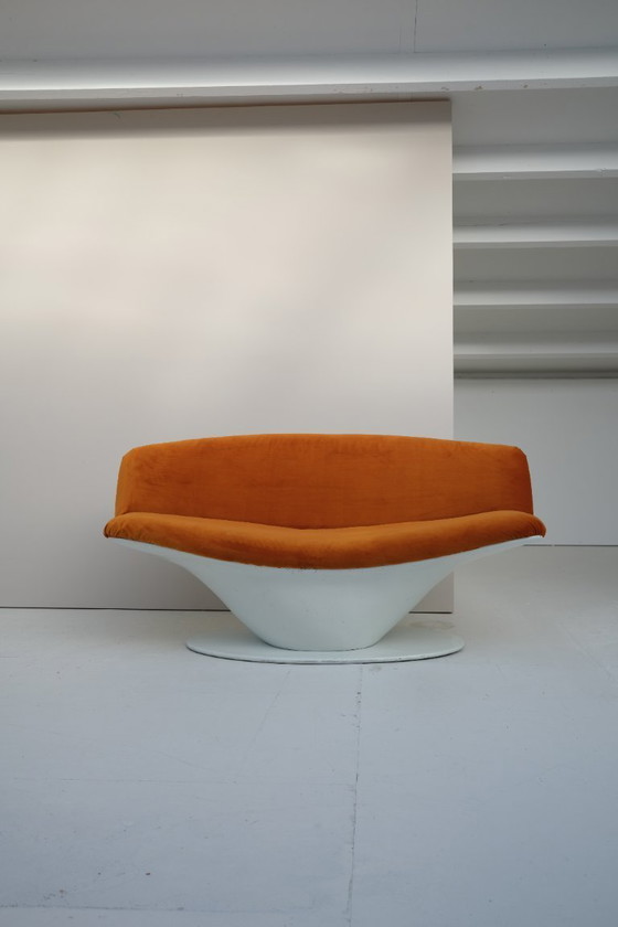 The sofa shows signs of wear, but is in good condition considering its age. It has been reupholstered in orange velvet. 170x80x90