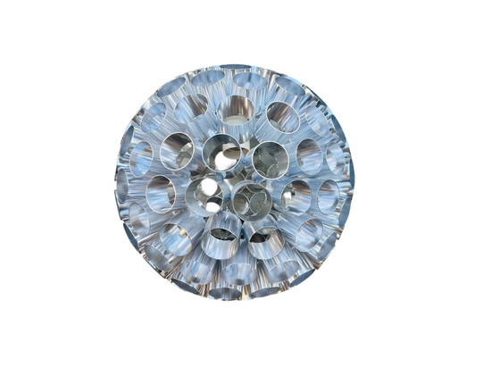 Illuminate your space with the striking Kenwell Ranex vintage hanging lamp, a quintessential piece from the Space Age era. This lamp's unique design, featuring a captivating array of circular metal elements, evokes a sense of futuristic elegance that is sure to enhance any modern interior.