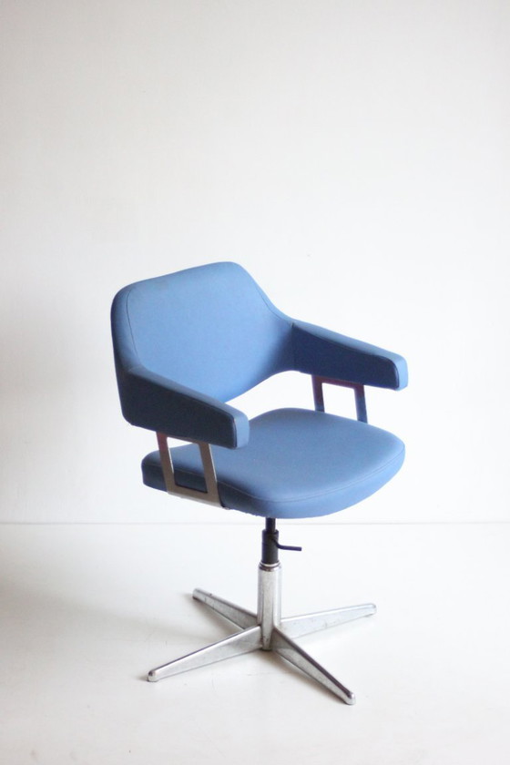 Good overall condition: Some rust on the feet, some stains on the skai, some scratches & scruffs on the fabric. All shown in the pictures.