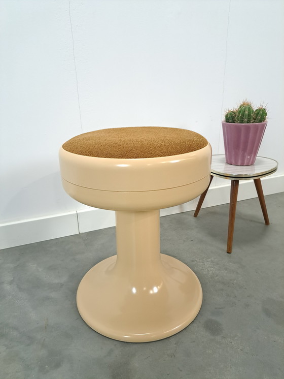Vintage space age stool. The tulip stool comes from Germany and has a nice beige color with brown cushion.