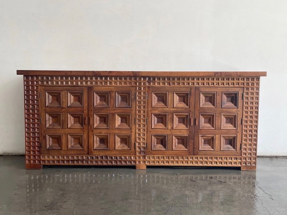 Step into the elegance of the 1960s with this exquisite Spanish sideboard, crafted from solid wood. This piece is a testament to the era's dedication to quality and craftsmanship, featuring beautifully handcrafted details and wooden handles that add a touch of sophistication to any room.