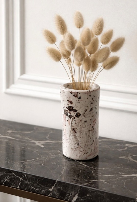 Cylindrical vase in speckled glazed terracotta.