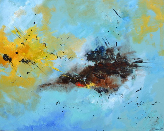 Discover "Spectrum," a captivating abstract artwork that evokes a world of color and movement. This unique piece, created on canvas, is an explosion of shades of blue, yellow, and brown, interspersed with touches of black that add depth and dynamism.