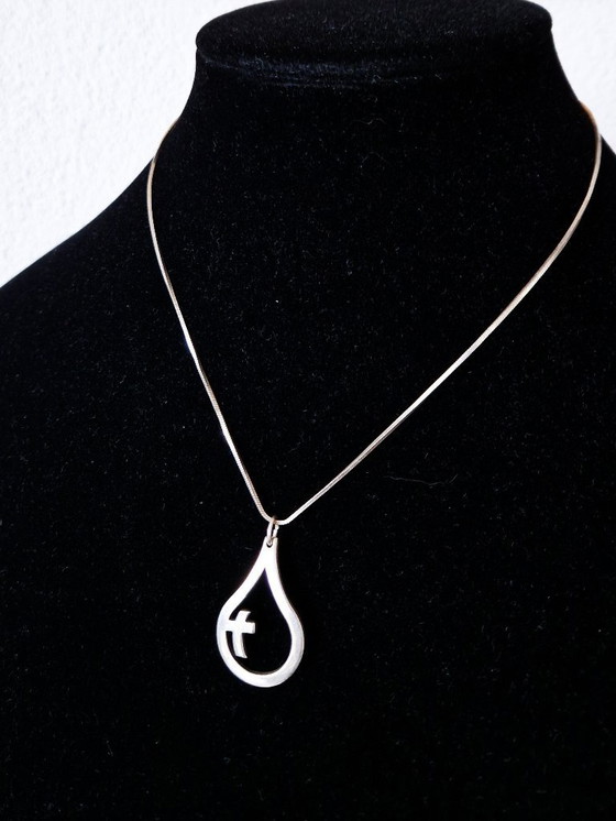 Silver drop pendant with matching necklace.
