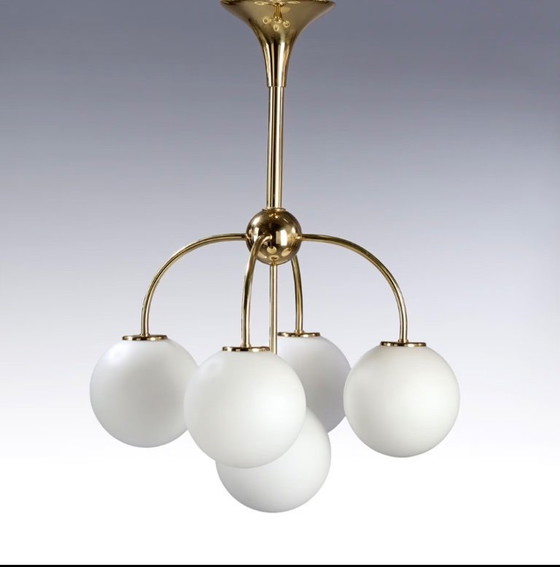 Illuminate your space with the timeless elegance of this 1950s Sputnik chandelier. A striking embodiment of Mid Century Modern design, this piece features a harmonious blend of brass and glass, creating a sophisticated yet functional lighting solution.