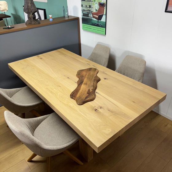 Base: BP100 anthracite and wood Table top: oak knotty bianco oil Dimensions: 200x100x77 cm