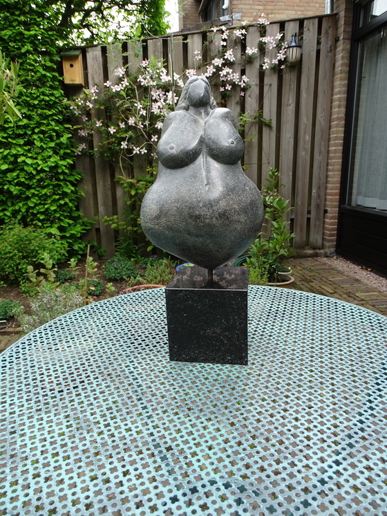 Sculpture by Gerda Glerum. Brazilian soapstone on natural stone base. 2014