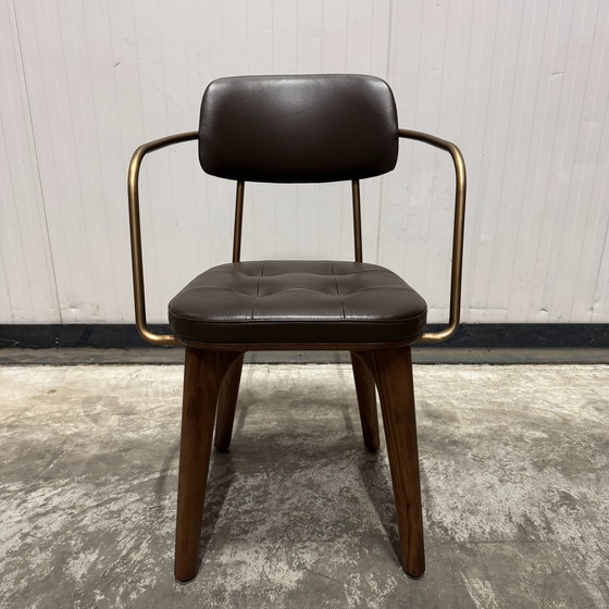 Stellar Works Utility Armchair U dining chair. The price shown is a unit price including shipping. Frame: Natural walnut. Upholstery: Milano Leather Brown 0972. In good condition.