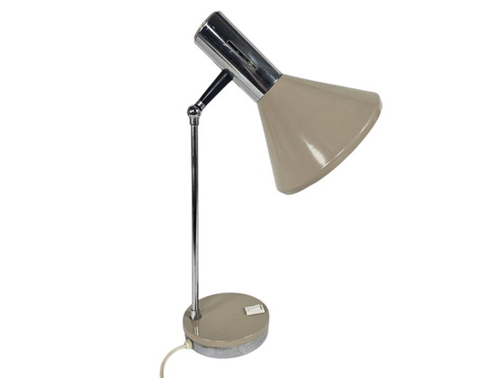Beautiful medium desk lamp by Stilux Milano, Italian design from the 50s and 60s, beautiful lamp. beige - gray with chrome. A desk lamp to shine by when doing homework or administrative work. But you can also read a book with it.