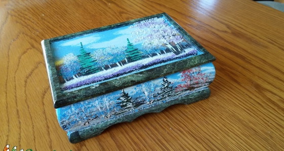 The box features a mirror inside, making it both decorative and functional — perfect for storing jewelry, keepsakes, or small treasures. Perfect as a gift, collectible item, or elegant home décor accent.