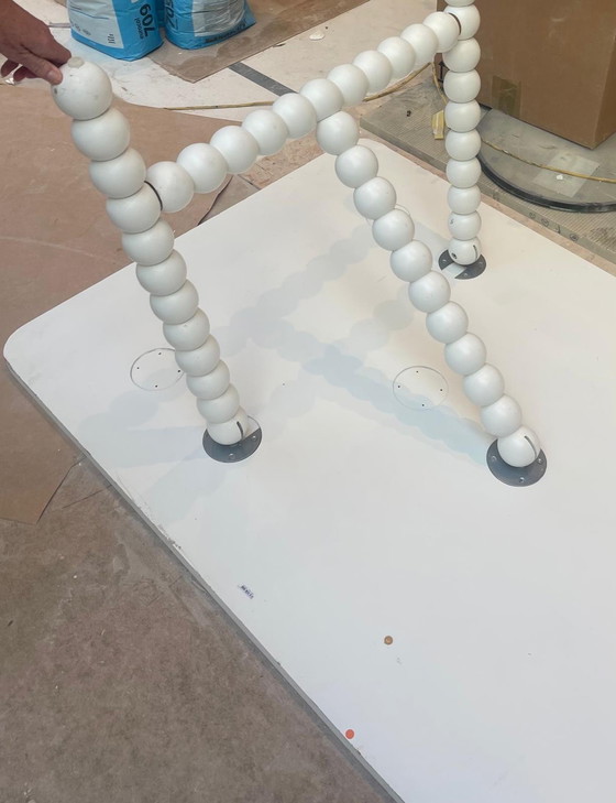 Meet the Studio BertJan Pot 'Balls' table, a delightful blend of playfulness and elegance that transforms any dining space into a lively place. With its distinctive spherical legs and striking blue finish, this table is designed to be the centerpiece of your home.