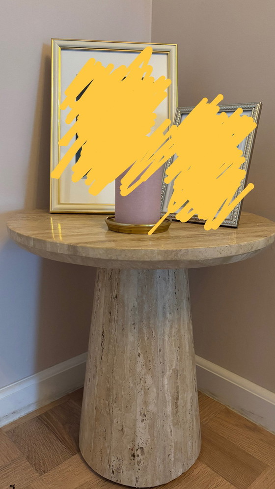 ConditionVery goodColorsBeigeMaterialTravertinNumber of items1Height45 cmWidth45 cmDepth45 cmSigns of usageStains