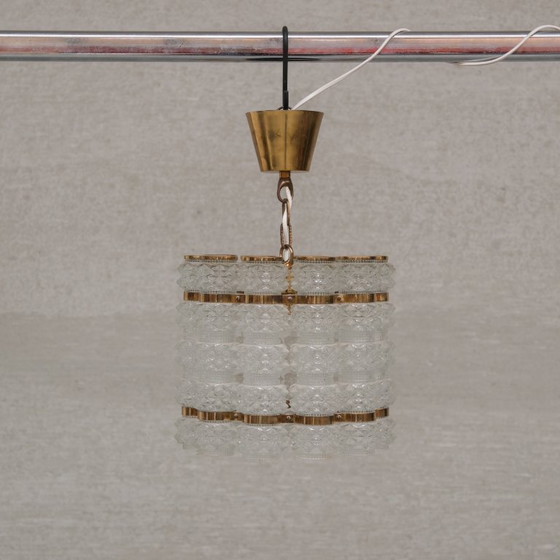 A brass and glass chandelier by Orrefors for Tyringe, Sweden.