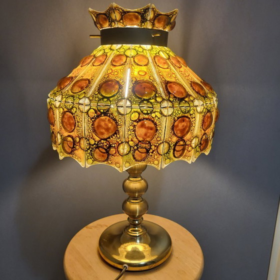 Rare glass table lamp with a weighted brass ball base.