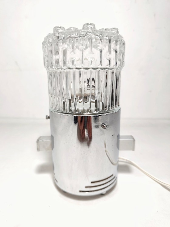 - Its robust metal base provides stability and complements the glass with a polished silver finish, reflecting the design aesthetics of the mid-20th century.